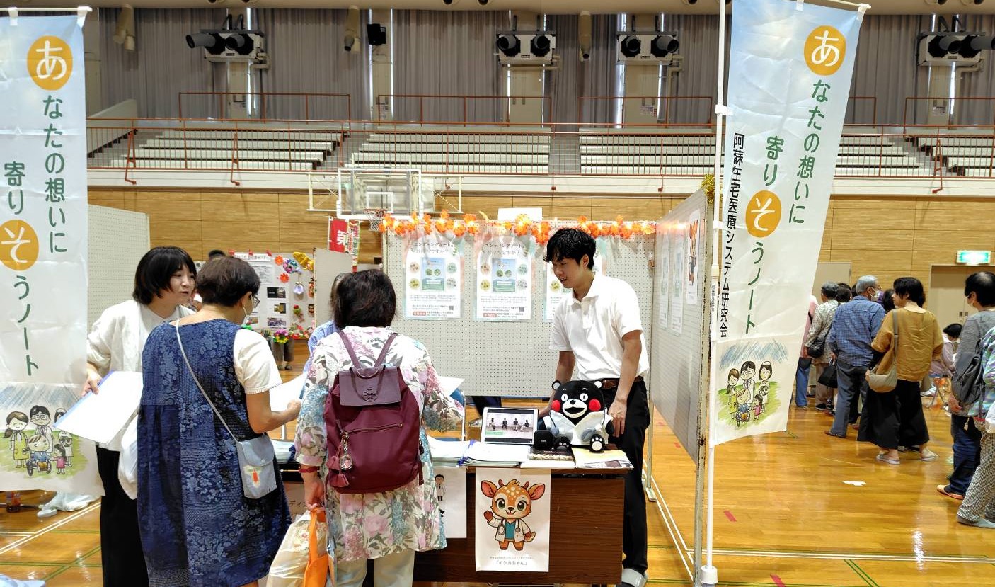 令和7年9月20日(土)に認知症になっても、自分らしく暮らせる まちを目指して 認知症への理解を広げようと 「阿蘇市認知症市民フォーラム」が開催されました。展示・体験ブースも多数参加し、私たち阿蘇在宅医療システム研究会も 「あなたの想いに寄りそうノート(エンディングノート)」 を持って参加しました。